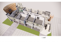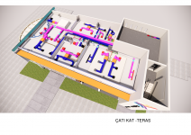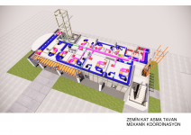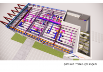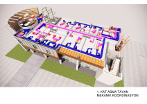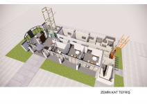 In the use of the office building, the 2nd floor is planned as an administrative floor. There are offices and service areas on the ground and 1st floors. The right side entrance of the building will be used for bringing supplies and food. Fire prevention is considered at the highest level. Fire escape ladder has been designed in accordance with the rules. This ladder will also be used for technical teams to reach the terrace. It will be possible to transport materials and food to the floors with the load elevator to be built next to the stairs.