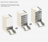 The building is located in the commercial center of the town, and hosts commercial and office apartment units. In terms of Architectural design, the project emerges as a statement of respect to neglected historical (Iranian) aspects of its urban context. It also insists on unity and rationality as basic distinctive values of human culture which in this project, leads to a parametric single rectangular module, forming the whole interior/exterior of the building.