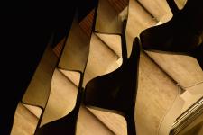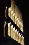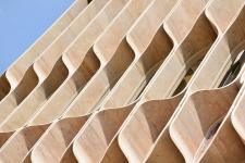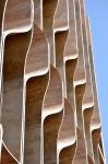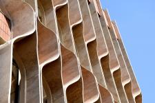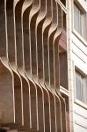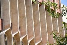 A hand made stone shading system was designed and fabricated to forme the facade of the building. The louvers are made of raw travertine stone slabs and are product of craftsmanship; all hand carved (semi mechanical; no CNC or...) and dry installed without significant loss of material and funds.
