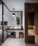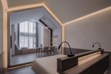 The “Gallery Room” aims to create a feeling of “living in an art gallery”. Multiple L-shaped masses varying in sizes and materials, interlock with one another and frame the space. Paintings and accessories are placed to generate different viewports, giving the guest the unique experience of being surrounded by art works in gallery.