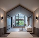 The design of guest rooms also responds to the precondition of large clearance and depth. Three themes- the “Cozy House”, the “Gallery Room”, and "Party in the woods" are designed for guests in creating a scale of intimacy and comfort. The “Cozy House” is divided from the front to the back into three zones connected by an extending pitch roof. The zone adjacent to facade is planned as "the fourth space". It is designed as an inserted functional “house” that can be transformed into themed typologies of teahouse, fitness club, kid’s room, home theater, etc.