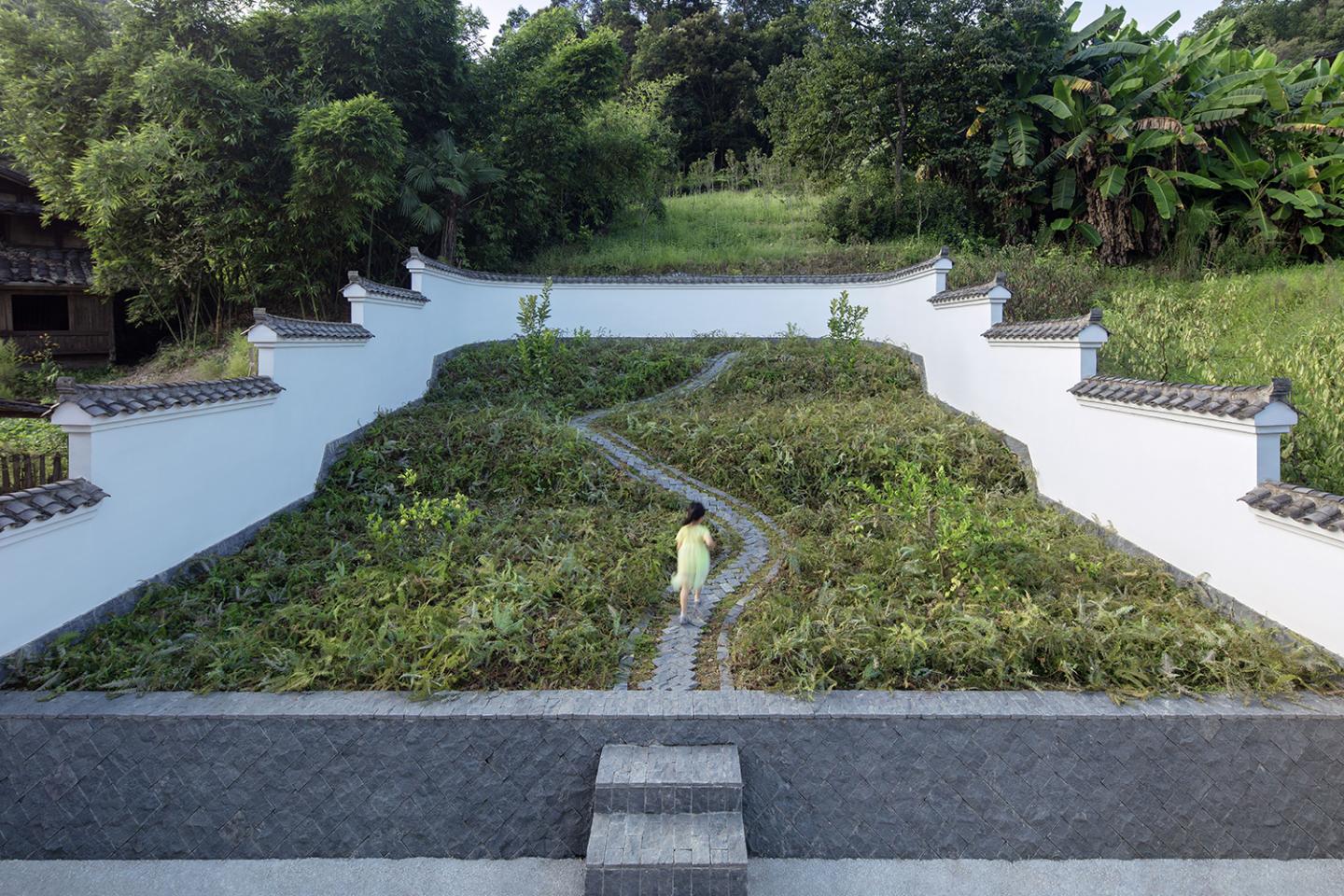 This ancestral house is inspired by a distinctive type of vernacular architecture in the surrounding context, in which the symbol for ‘Earth’, ‘Human’ and ‘Heaven’ are constructed in a sequential order to follow the terrain of the mountain..