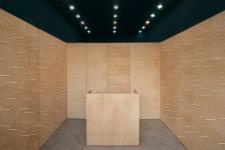 The project has a quiet presence on the urban wall and presents itself to the city only with a brief sign that extends from the roof to cover the installation parts.