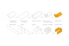In this duality, the storage space of parts and accessories and the repair section, which does not need to be seen by the audience, have been transferred to the "hidden" part, and affordable materials have been used to cover it and implemented with simple techniques. The sales and display of products section that have a direct connection with the audience and are directly related to the city was transferred to the "visible" section. This part includes perforated plywood boards that with the arrival of wood (ice cream stick) becomes a space for displaying products and increases the productivity of the space due to its maximum flexibility. Counters and showcases are also moving components of the visible space that move easily.