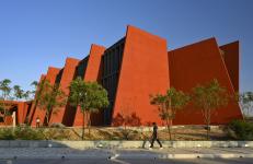 Taking cognizance of the desert climate of its location with temperatures in excess of 35°C for most of the year, each of the classrooms are north oriented to derive indirect sunlight .