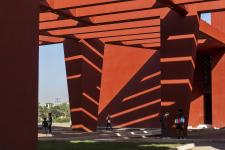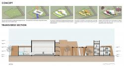 The auditorium , primary school and administration space occupy the southern side of the plot opening into a large sheltered open area towards the north beyond which the secondary school classrooms, library & cafeteria are located.