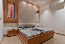 A simple basic home for a small family unit in Agra, my home city. Their intent was to have a small well utilized space which is not clustered but fulfills all their requirements as a small basic family unit. The choices of color were to be sober. Use of modern age materials like Corten Steel on main door and glass powder brick tiles on the exterior was done to reduce maintenance. Pandomo has been used on one wall each in two rooms to give it a nice texture and add character. The use of such material has not been done for its own beauty but to enhance the look of the surrounding furniture and artwork. Subtle and matt finishes have brought out the exotic character of more permanent materials like stone, ceiling and furniture.