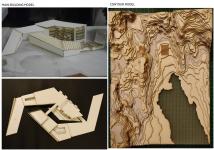 Informed by the context, the design balances its sharp angles, shaped by the scenic views and natural contours of the land as well as the co-relation of the programs themselves, with the use of humble and indigenous materials. The limestone which is extracted from the salt range itself is used as cladding over a concrete structure. Used in a complementing contrast is the Glulam as accent material; it emanates the warmth of natural wood while simultaneously speaks of the technological advancement of the engineered material. The extensive use of glass creates the necessary visual break with wood lattice acting as a permeable transition. The intricate geometric latticework on the engineered wood reflects a fusion of traditional design element juxtaposed with contemporary modern design. Apart from a fusion of diverse material, the scale of the form is also a decisive element. The massive structure is made porous with linear voids creating negative spaces and intimate learning experiences. The bridges that link the programs bring cohesion, making connectivity tangible.