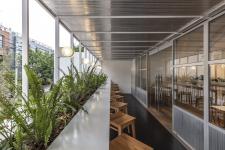 In the facade we used metallic meshes located in different depths for the incorporation of vegetation designed through cylinders. This strategy allows us to visualize the old façade suggesting an interest in preserving the history of the old building. Through this operation we have managed to unify the line of the balcony facade and the front, achieving a semi-covered space of use.