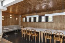 The repetition and modulation has allowed us to establish order from where we have proposed a specially designed lighting, with a reminiscence of the fifties. In the same way, the wooden cladding represents an aesthetic linked to this period.