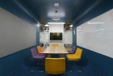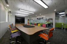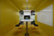 Also each collaborative space is different in nature. Each meeting room is in a different shape and configuration. So while there is a meeting room which is tunnel shaped with fully upholstered inside, the other one can be a mere “ BOX “ with bar counter and bar stools. Somewhere else, it can be a bean shaped room with soft seating inside.