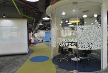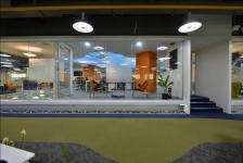 A need for lot of writable areas is fulfilled with columns cladded with writable film. Also the “ BOX “ meeting room’s outer surface also acts as a writable area due to the application of back painted glass there.