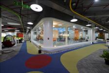3. since café and recreation are a break out space from your routine work, the passage leading to café is created as a walk in the woods. With MS sculptural trees, a carpet that resembles fall pattern on the floor and acrylic birds in the ceiling, this area is one of the most interesting areas in the office.