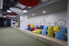 The story really starts from the reception, which is circular in shape and more like a lounge. With no conventional reception table, wood and natural moss panelling and a backlight ceiling, this area acts as a prelude to the inside experience for a visitor. Also unlike a conventional logo, here the letters “ Globant “ are formed with a LED strip which resembles a neon light in handwritten format. That itself is a statement for the way the organisation portrays it’s culture.