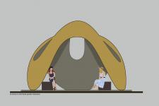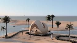 "Our design team has utilized an innovative construction method by using 3D printing, which can use endemic materials, such as clay and sand, with a layer-by-layer method and create the form without any harm or disruption to the environment and the natural surrounding. We integrated the design of a dome-shaped shell with vaulted openings for stability. The plan with dimensions of 18 by 18 square meters (including the perimeter of the design) is designed in a circular platform, which is 10m high, for stability and strength."