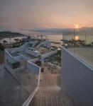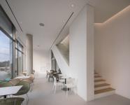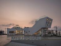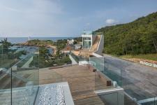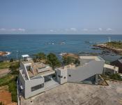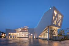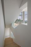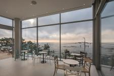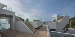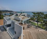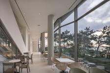 On a 6m high hill, this two-story building is composed of a total of nine levels from the first floor terrace to the observation tower. The topographic characteristics of hills, which are slopes, were connected as the main concept of the building's interior and exterior spaces as well as the overall circulation. With the visual changes and experiences users can feel from the various heights and the location and form of the door installed to eliminate the boundary between the interior and exterior as well as connect the overall circulation, the building was designed to allow visitors to be able to roam the entire building as if they were taking a stroll and enjoy the colorful scenery. The first floor terrace, located at the very front of the hill, is the nearest space to face the sea and colony of pine trees, and it becomes the lowest level of the building while actively using the characteristics of a slope (hill). The hall on the first floor allows the various levels to be visually experienced since the form of the ceiling, which was created by the height difference of the interior floor as well as the height difference of the low terrace and roof floor that can be seen from the outside, is all visible from one space. Moreover, the view of the sea and the colony of pine trees through the window enriches this experience. The staircase to the roof and the tiered chairs in the vertical space provide a variety of visual changes created by each step. Furthermore, when the rooftop is reached, new perceptions and directions of various angles and heights are gained, and the roof floor that formed the hall's ceiling becomes a stand with various views, providing people with a place to enjoy the wonderful view of the East Sea. The observation tower, which uses the upper part of the stairs, is the highest level, and it is also a space where the closest and farthest parts of the blue sky and East Sea can be seen, as well as a place where the whole building can be seen at a glance. The entire rooftop was made to offer a cozy feeling to users by creating a sense of rhythm, like the dynamics of music, with the combination of concrete, a processed material, and wood, a natural material. Translations provided by MasilWIDE