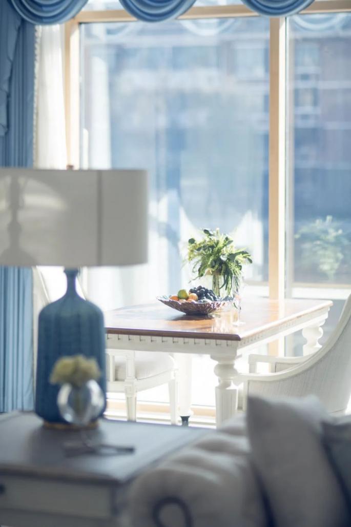 The owner is an entrepreneur who pursues a high-quality life while he is busy every day. He hopes that his future home will be comfortable and relaxing, and blue has always been a favorite of both male and female owners. Therefore, the designer disassembled blue into four different shades — The clean blue outlines the refined French retro style; Morandi's gray-blue furnishings depict the French country style, striving to achieve the relaxation and intimate atmosphere expected by the owner. Each blue corresponds to a material, forming a growing relationship with each other, with saturated bright and vibrant gold, either interspersed or stretched, creating a dreamy space like blue.