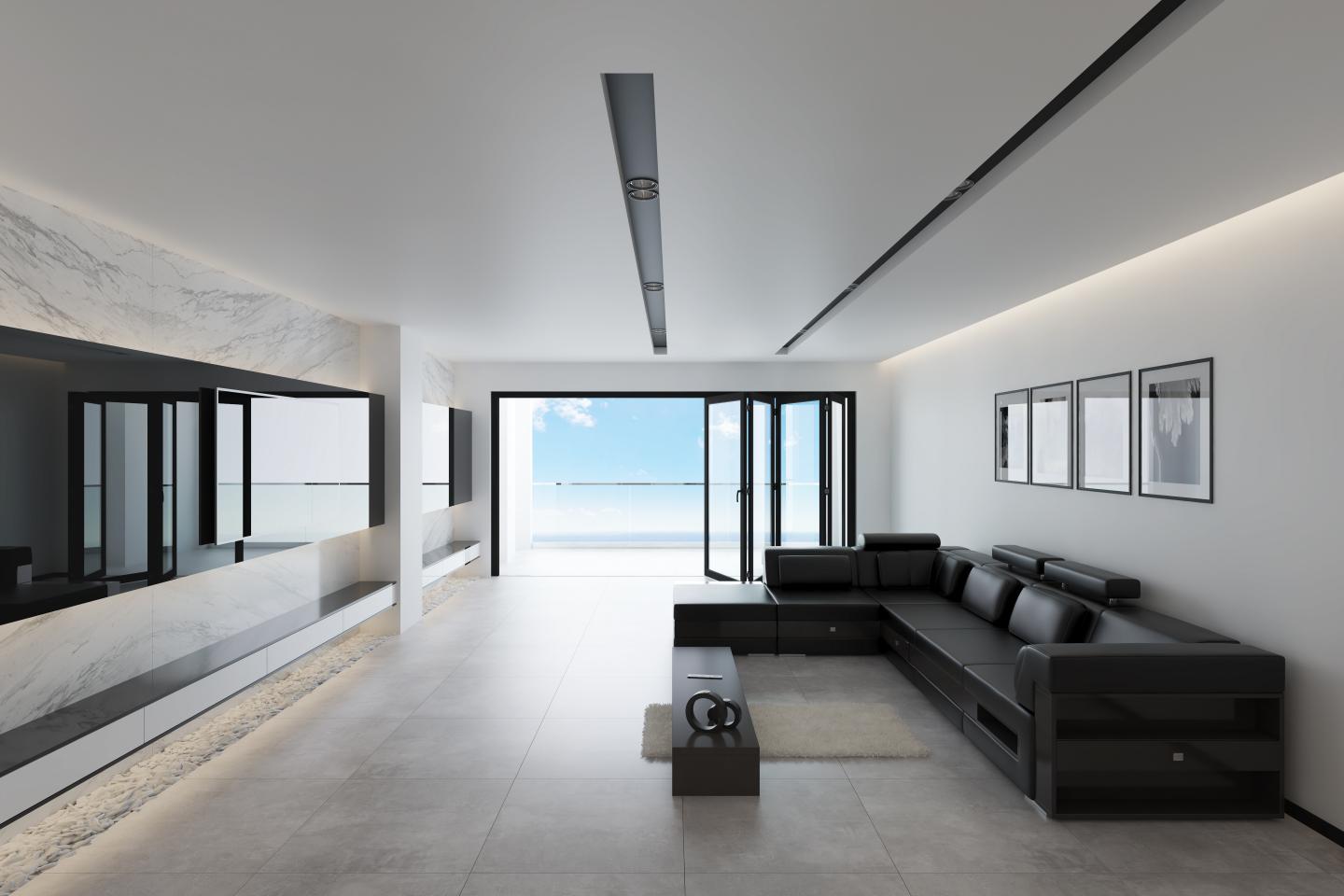 The most interesting feature of this project is the sea vision which was used in the design of the balcony with glass fences. For further attention to the sea vision, two black lines were designed with spotlights on the ceiling, and also a TV wall was designed in the same direction with glossy material for this purpose.