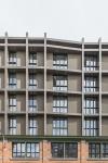 On top of the historic premises, POLO Architects designed a distinctive aluminium volume inspired by the industrial residential heritage of the early 20th century. This new section has a playful rhythm and a fresh appearance, which creates a stark contrast with the existing building, acting as a solid base. Despite its opposite appearance, the superstructure copies certain themes from the substructure, like its vertical subdivision in bays and its rational structure.