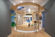 Upon walking into the space, we are welcomed by a subtle feeling of randomness, perhaps caused by the sphere floating in the air, or the graceful cave at the corner. Intersecting straight and curved lines construct a spatial relationship almost invisible at plain sight. Then again, such wonderful impressions make children imagine and ponder. This design approach interprets the meaning of early childhood education: Mindset liberation.