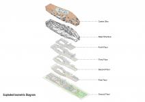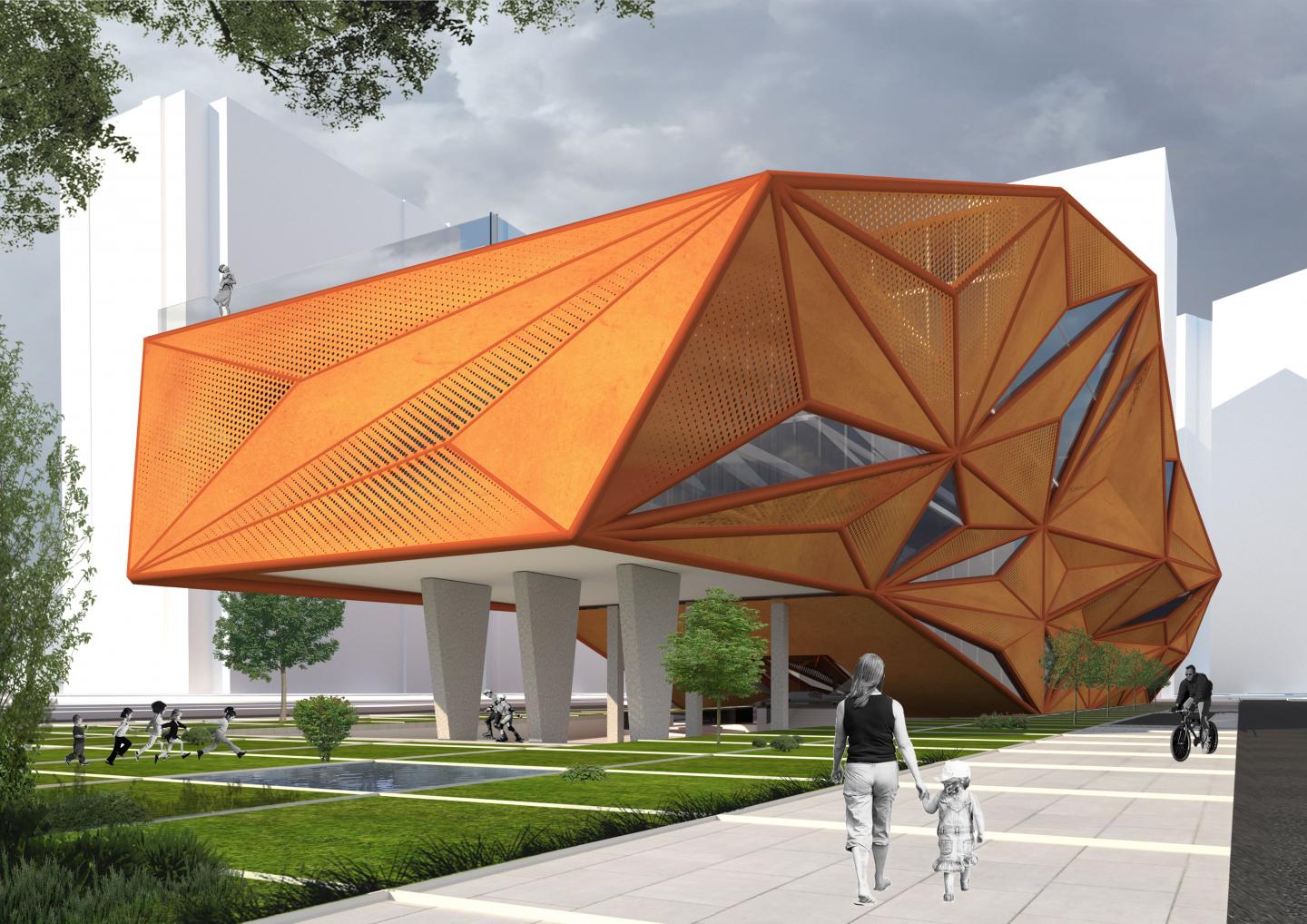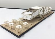 The project was approached by a digital exploration on its linear geometric shape. An analysis was done on the tessellations of the geometry to shape the envelope of the building. To contrast the surrounding concrete morphologies of Abu Dhabi, a light structured steel building was depicted for the project. The building was further modified to house the functions of the project.