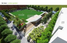 The design makes use of the natural slope of the site, varying from 0 to 2.4 meters along the length of the site. The design smartly plays with the slope, football field and parking area at the lowest level, accommodating amphitheater and a sunken court in the middle levels, and peripheral bus parking at the topmost level.