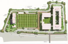 The existing campus is spread over 6.1 acres and is approached by Kaifi Azimi Marg from the south west side. The campus presently adorns buildings in front with a playground in the backdrop. The proposed design strategically places buildings in the rear, with a football field in the foreground. This site zoning provides a “welcoming feel” to the user. Also, the view remains unhindered and the user is allowed to flow with the space, both visually and physically.