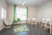 The collection consisting of functional modules can be easily adapted to different destinations of different sizes. The day-care center began operation in the beginning of 2015. It is made of massive log, and it is part of the construction solutions in accordance with Honkarakenne's Terve Talo™ (Healthy House) concept, developed together with the Allergy and Asthma Federation and certified by the Technical Research Center of Finland. These solutions pay particular attention to quality construction and the purity of indoor air as well as the use of healthy and safe construction materials.
