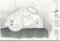 Levels: Three levels; Ground Level / Starting Point and The Ending Point of the Project ( The Shelter which is part of it is platforms on different levels and the other part is glass and water to let the visitors see the center from above), First underground level (Exhibition and open to the related views), Second underground level ( Exhibition, open theater, Cafeteria all are open to the related views, Administration, Workshops, Storages, Mechanical and Electrical Rooms )