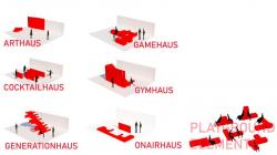 This project's aim was to combine the living environment's of different generations. Project was dedicated to only elder and university/college students who share the same environment of social housing. Our initial idea was to create specific activities that unite those different generations. The activities like going to the cinema, workshop areas, coffee shops are all combining acitivities of different generations. Another idea is that, creating activity houses that can be used by the owners in the residential areas. We are designed some special houses which are called 'ARTHAUS,GAMEHAUS,ON-AIRHAUS,GENERATIONHAUS,COCKTAILHAUS and GYMHAUS' for elder and young people to not to give basic house types in their residential units.