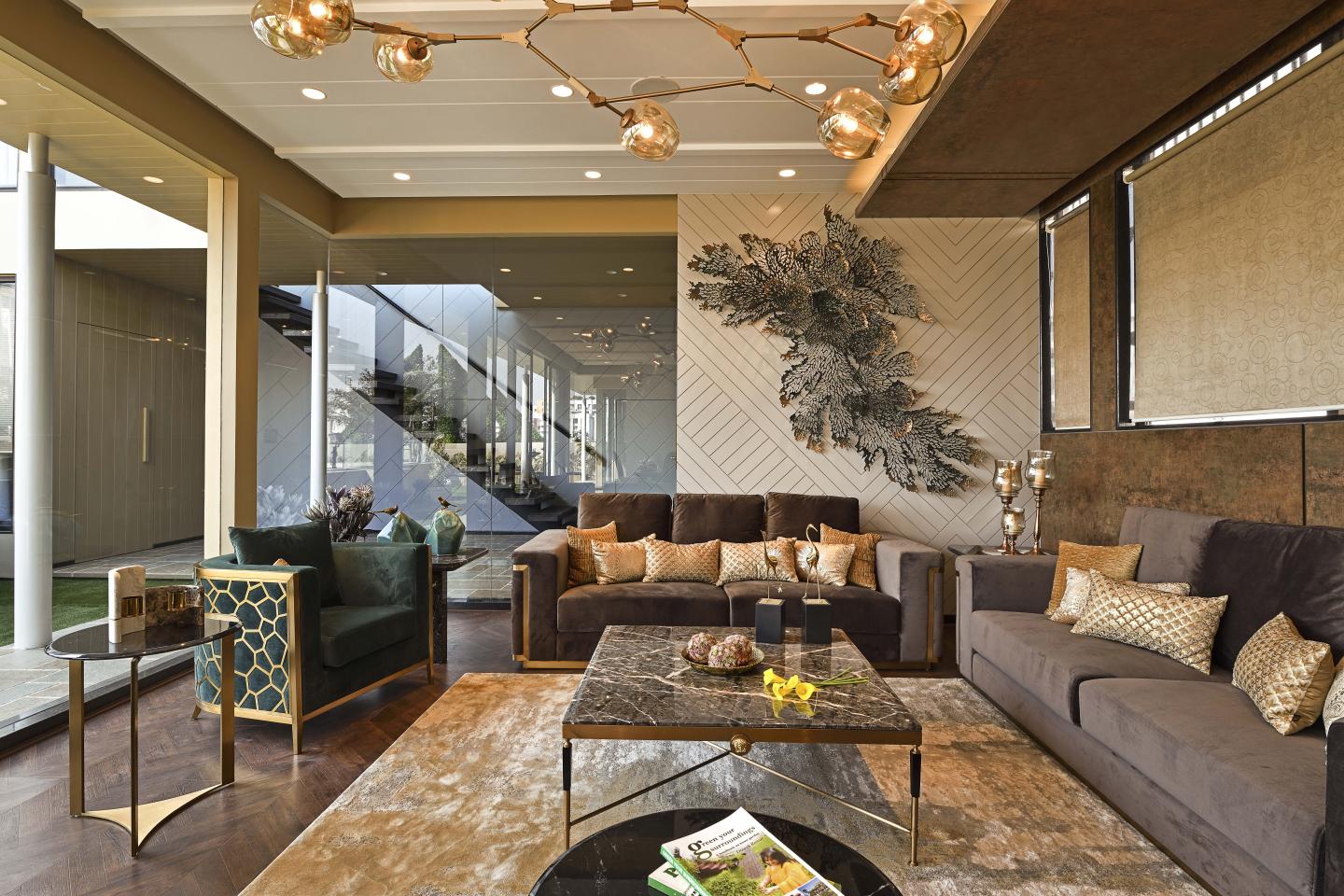 The space was a complete suite property. The luxurious details incorporated in the living resonating with the local spirit.The space was a real treat to design while adding onto the sparkling aura of the arena. Anything and everything in the rooms, from a basic tray to the bedside table untangle the saying “luxury is in each detail”.