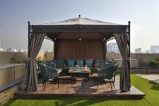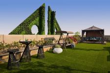 The utility of this terrace lies for the pleasure and leisure of the family and guests, thus maintaining supreme aesthetics and appropriate (minimal) amount of furniture, maintaining open spaces to solve the purpose of relaxation and maintaining a connection with nature and also hosting huge parties. Lighting helps to accentuate and elevate the details of any open area. This personifies luxury and grandeur. The client demanded magnificence and an extravagant experience for every member of the family.