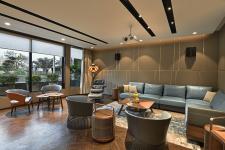 The lounge manifests hints of flamboyant yet sophisticated European accents with the exclusive furniture pieces operating as expressive