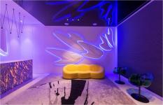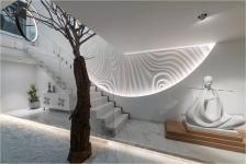 White exterior and interior would act in the favour of the designer as the colour is associated with openness, purity and sterile. So the interior white walls technically made the space look bigger, to give the space grandeur feeling.