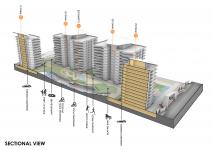 In response to a very specific brief , this housing project has 126 apartments in six buildings of 11 storeys each.