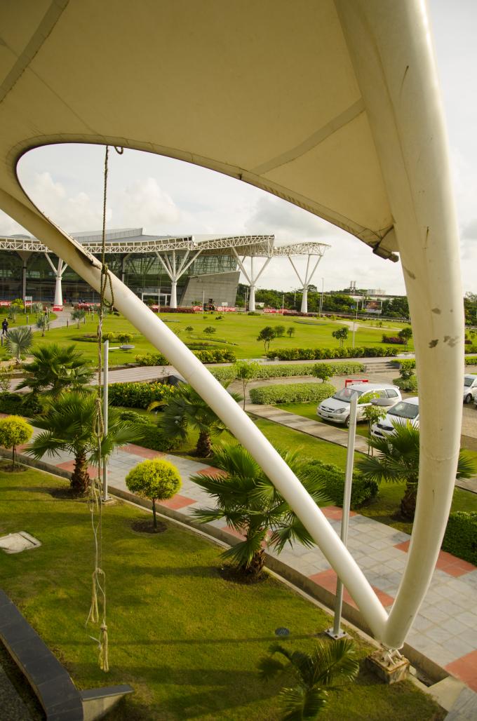 Having used the Sandwiched layer of aluminum profiled sheet roofing, Multicellular insulated translucent panels of skylights, accommodating a largely span spaced roofing system and the curbside canopy done with polycarbonate sheets and high performance tinted toughened glass, lends an extremely symbolic and high-tech appearance to the built form. The rear side of the air-side corridor is designed to be evolved from a “spaceship” which is attained using a louvered tube form.