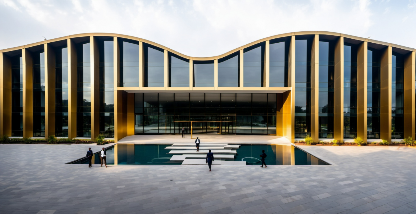 Building identity is defined by the roof! The building starts as 1 floor in two opposite directions and reaches 3 floors in the middle of the building.On the sloping surface of the building, which rises from the 1st floor to the 3rd floor, terraces that open to the outside on each floor are designed.In the middle part, where the building reaches 3 times height, a transition is provided that connects the two ends with 3 curved movements. This rhythmic movement places a special emphasis on the entrance of the building. The façade of the building was formed with vertical elements, indirect solar intake of the interior spaces was provided in the hot weather conditions of Uganda. Thanks to the retraction of the facade, a more sustainable design in terms of energy consumption has been achieved. The roof of the building has become a 5th facade due to the designed slope. Covering the roof and facade with standing seam metal cladding as a single material creates architectural integrity between the roof and the facades.