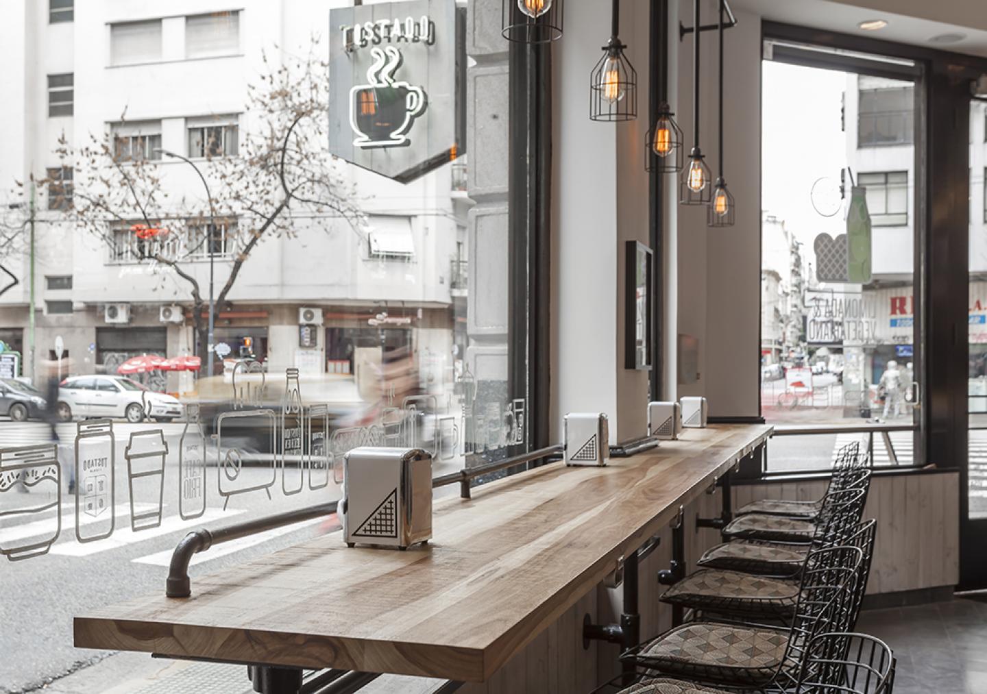 The space thus manages to show off with the aid of very few elements, allowing for a more prominent role of the retail products: a good coffee and a delicious toasty.