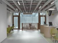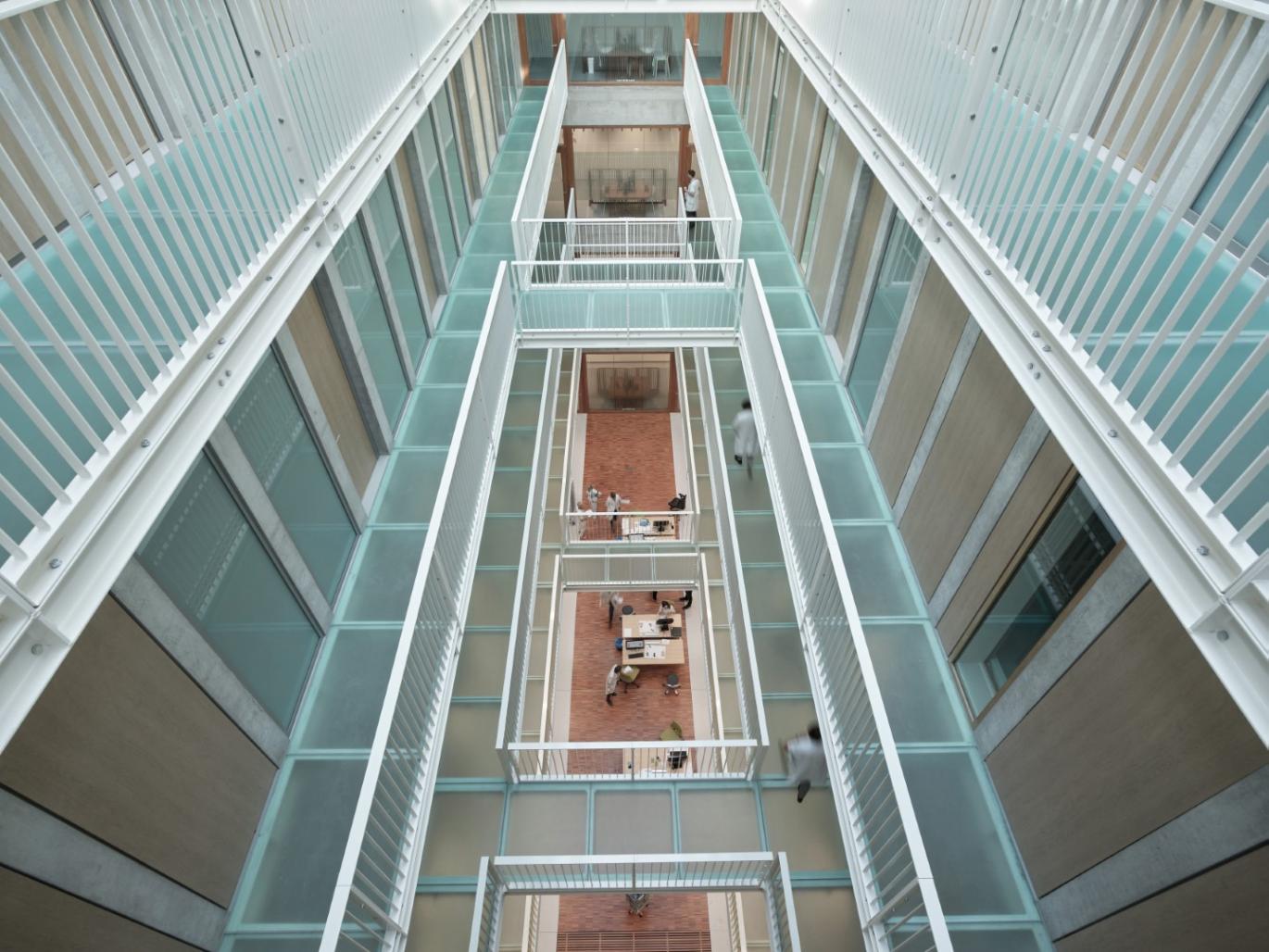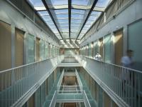 The design had to meet very specific design requirements. The request for a strict separation between the circulatory flows and rooms for patients and doctors led to a highly rational, generic plan that permits flexible use. The consultation rooms are arranged around three building-high light wells. These pleasant rooms are bathed in natural daylight. Doctors and staff circulate via walkways along the light wells, while patients reach the consultation rooms via a hallway on the other side.