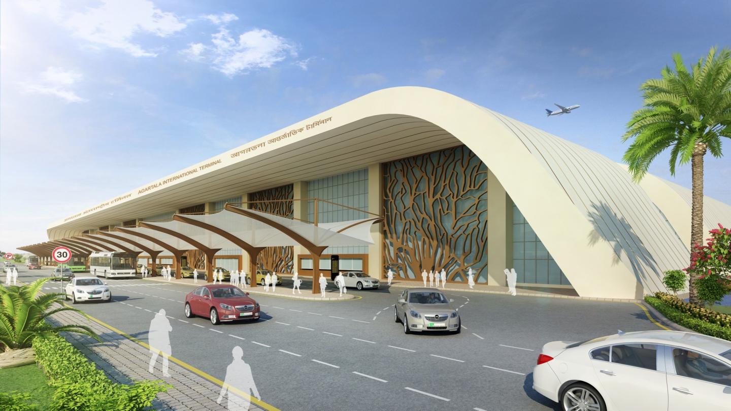 The new modern Integrated Terminal Building at Agartala Airport is designed keeping local architecture, art, and heritage in mind. The design manifests the sweeping roof profile that envelops the entire terminal spanning across 30,000 Sqm and procures its form from the hilly terrain of the state of Tripura. The intent was on creating an overall free-flowing terminal which is simple and easy to construct, while being a perfect mix of ecological infrastructure, art, and building technology, and also using advanced Intelligent Building Management Systems so as to optimize the consumption of energy.