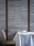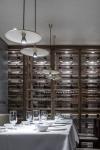 Brass strips are one of the few materials in this project. With neat lines, it injects tem-perature into the cold-colored space, immediately balancing diners’ perceptions.