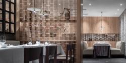 Each small compartment is subtly divided by a traditional Chinese wooden grille, where moderate lighting focuses create privacy. The half-covered partition also en-sures interaction with other spaces.