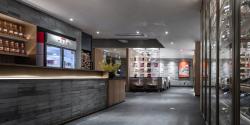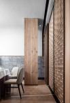 In a more private box space, a large area of elm wall panels conveys a delicate at-mosphere that is as warm as jade. With no redundancies, it complements the black brick wall.