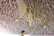 The elements on the ceiling are constantly moving and at the same time the combination of sound and acoustics