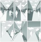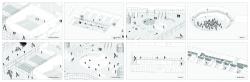 Sunken courtyards, urban happening spaces, are proposed following the traces of the two demolished gasometers, which are also used as the entrances of the institution. Tunnels, connecting all the parts, are used as the main circulation of the institution.