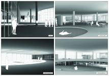 Free access public spaces include places such as exhibition hall, library, working spaces, etc. However, instead of dividing the space according to function, a big open space is provided including all these events mixed to each other, so that a people who come for the library can also visit the exhibition at the same time, interacting with others. Also, office spaces and small multi purpose halls are included in the basement floor of this part.