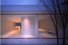 Abstract House, in Hiroshima consists of a core box in the centre of a courtyard, surrounded by high walls to create a private space within. Video projects transform the internal walls at night.