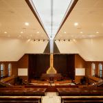 (2) Balance between divinity and humanity: On the one hand, the design takes into account nature of the church that it is a divine space. The Bible says that "God is light", which corresponds well to the Protestant doctrine of giving up representational worship, and is conducive to using architectural techniques to build the space. Natural light is introduced through the strip-shaped clerestory windows, the huge tower above the altar, as well as the glass canopies above the corridor and the transitional space at the main entrance. The dynamic light and shadows symbolize sanctity, as well as the ubiquity of God. On the other hand, the design also considers giving spiritual and physical care to individuals. Two crosses represent "love" (the empty cross) and "salvation" (the light cross) respectively, which also embody the spiritual roads pursued by its believers throughout their lives. At the same time, many user-friendly facilities, such as disabled ramp, baby care room and various communication rooms, are designed to enable the church to be not only a place of worship but also a place for human activities and interactions, just as the Bible says, "the real dwelling place of God is the congregation of believers".