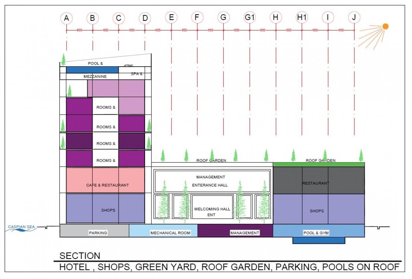 Various units and spaces completed by facilities and amenities need for 5-star hotel near the beach of Caspian sea.