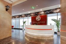 The reception table itself highlighted the brand and had a welcoming contemporary design that cannot be missed. Arm chairs and comfortable furniture on either side of the reception, led to the two wings of the office, that connected across with a crescent paneling feature that was symbolically designed as " The Queens Necklace"!